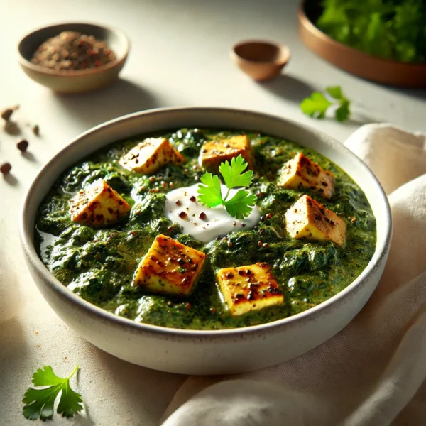 Homemade cottage cheese and creamed spinach cooked with garam masala gravy.